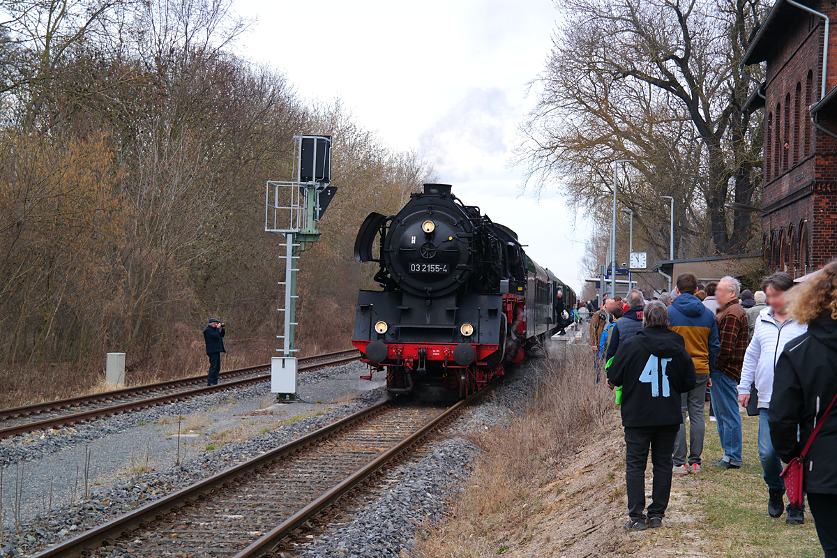Am 14. März 2026 war es wieder soweit. Unter dem Motto "Berlin macht Dampf" ging es am 14. März mit einem Sonderzug gezogen von Dampflok 03 2155 (Schnellzug) nach Letschin. Bei gutem Wetter fanden sich sehr viele Menschen am Bahnhof ein um das Spektakel zu beobachten.