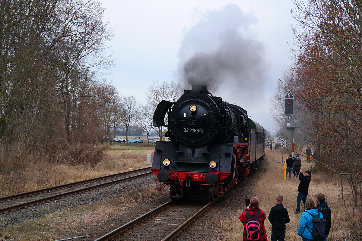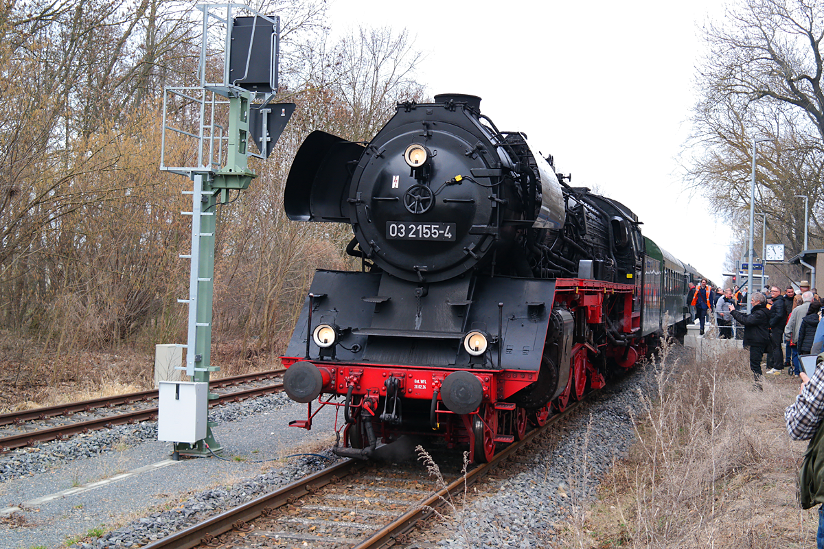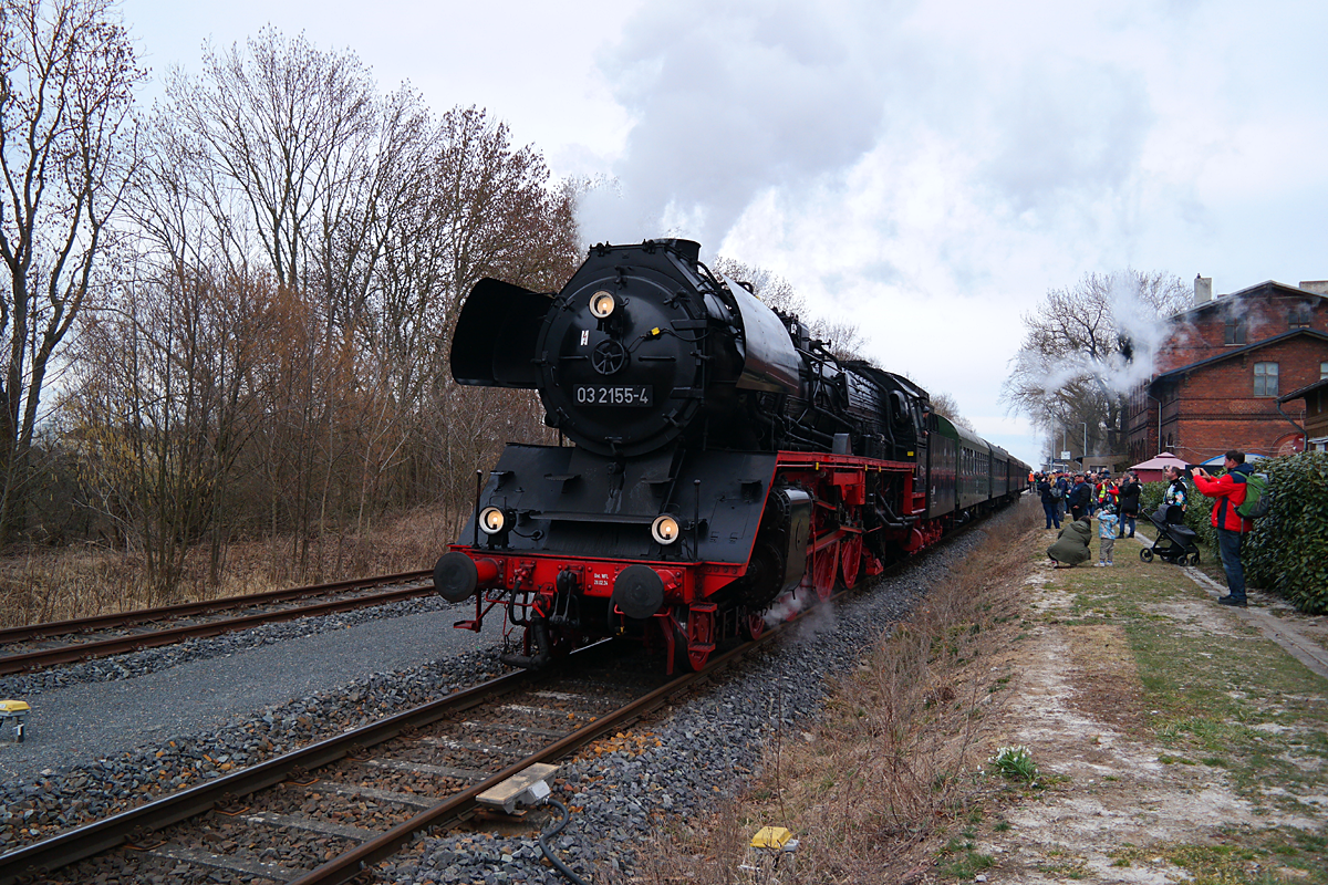 Am 14. März 2026 war es wieder soweit. Unter dem Motto "Berlin macht Dampf" ging es am 14. März mit einem Sonderzug gezogen von Dampflok 03 2155 (Schnellzug) nach Letschin. Bei gutem Wetter fanden sich sehr viele Menschen am Bahnhof ein um das Spektakel zu beobachten.